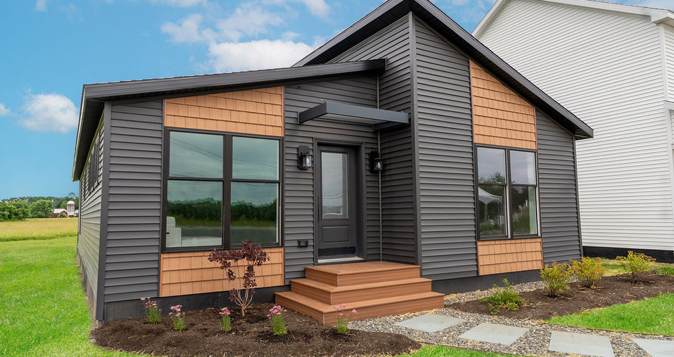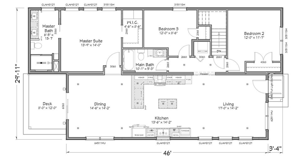 The Julia is a modern 1560 sq ft. ranch with a sawtooth roof pitch adding angled ceilings in the Living Room, Kitchen and Dining Room creating volume style. An open floorplan with kitchen adjacent to the dining and living areas creates an ideal space for hosting. Rounding out this plan are nicely sized bedrooms with plenty of closet space and a large master bedroom with private bath.